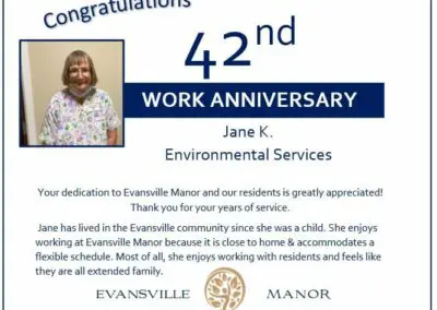 At Evansville Manor we don’t “fill” positions, we look for real people to join our family. We believe that if we treat and value our employees like family, they in turn will treat our guests and residents like family.